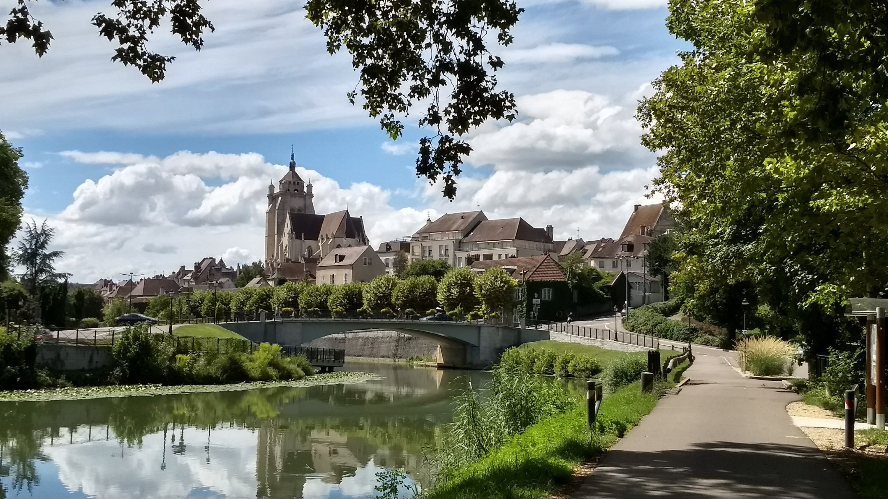 Nous repartons et prenons un super raccourci de Flo, qui plutôt que de nous faire faire demi tour sur 2 km après un pont, nous fait longer le canal dans le bon sens jusqu’à Seurre. Vraiment pas malin, ce petit écart par rapport à l’itinéraire officiel nous fait gagner 5 bons kilomètres et en plus en très bonnes conditions.