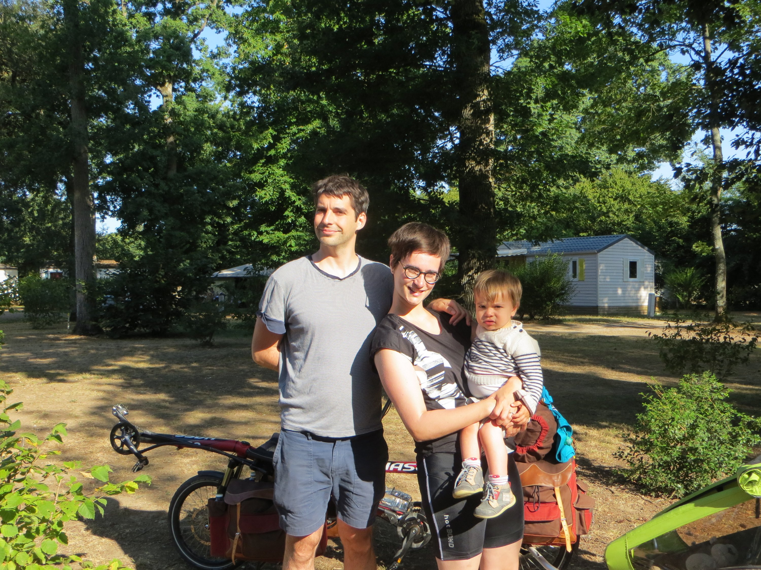 La logistique avec une charette, un tandem, et des sacoches, n’est pas simple. Impossible de prendre le TGV. Les autres trains, c’est la roulette russe (en principe tandem et charrette sont interdits, l’application de cette règle est à la discrétion du chef de train). Reste la voiture, de préférence grande. Nous pensions à une location, mais mes parents ont proposé d’assurer le trajet aller, en mettant nos affaires dans une caravane, et nous en prenant le TGV jusqu’à Nantes.