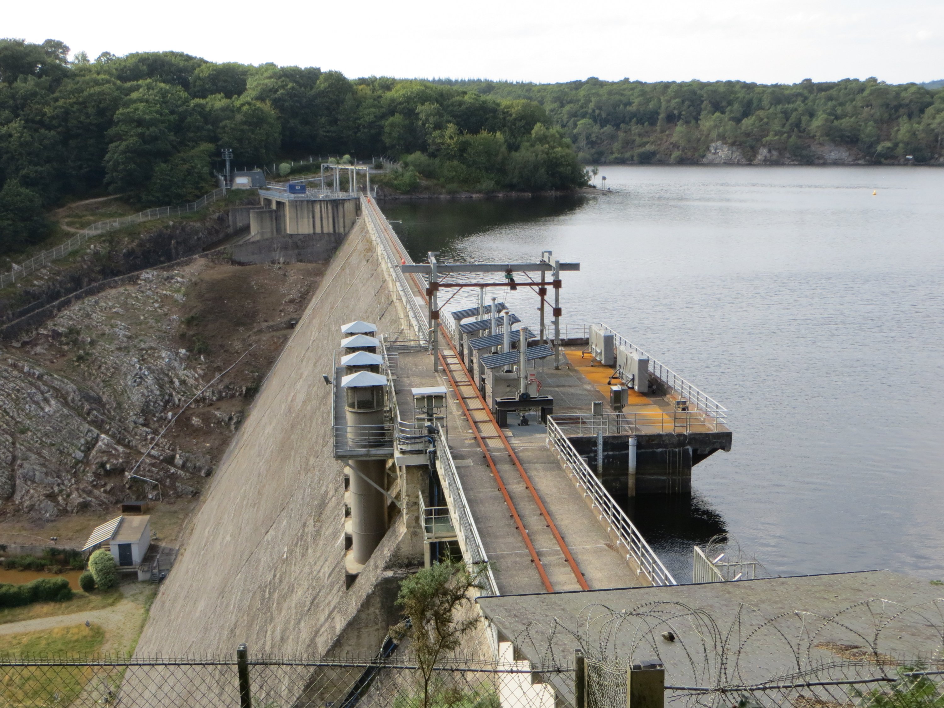 Le barrage du lac de Guerlédan La vue est assez impressionnante. Le soir est ensuite très calme. On hésite cependant sur l’itinéraire à suivre le lendemain, entre un direct pour Loudéac ou un détour par la rigole d’Hilvern.