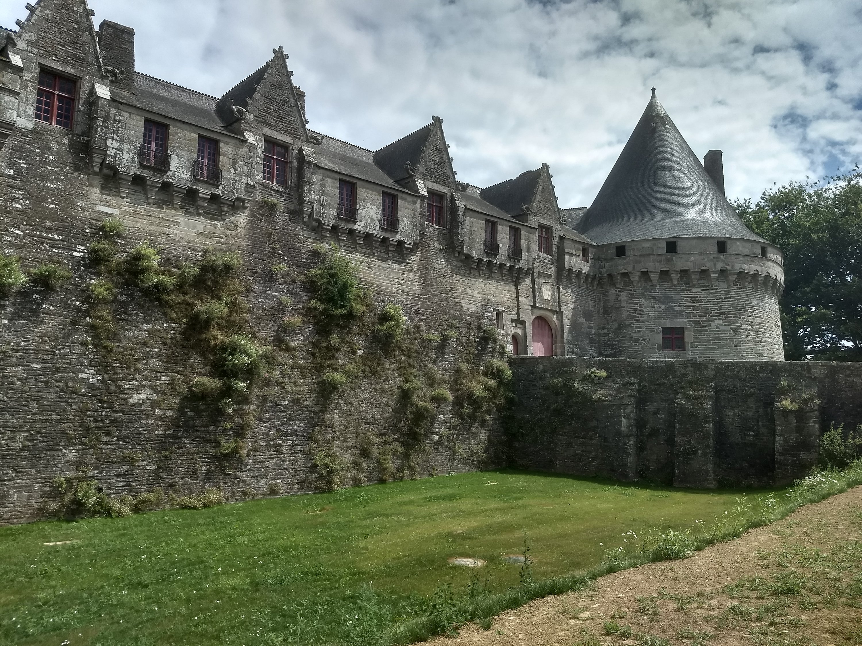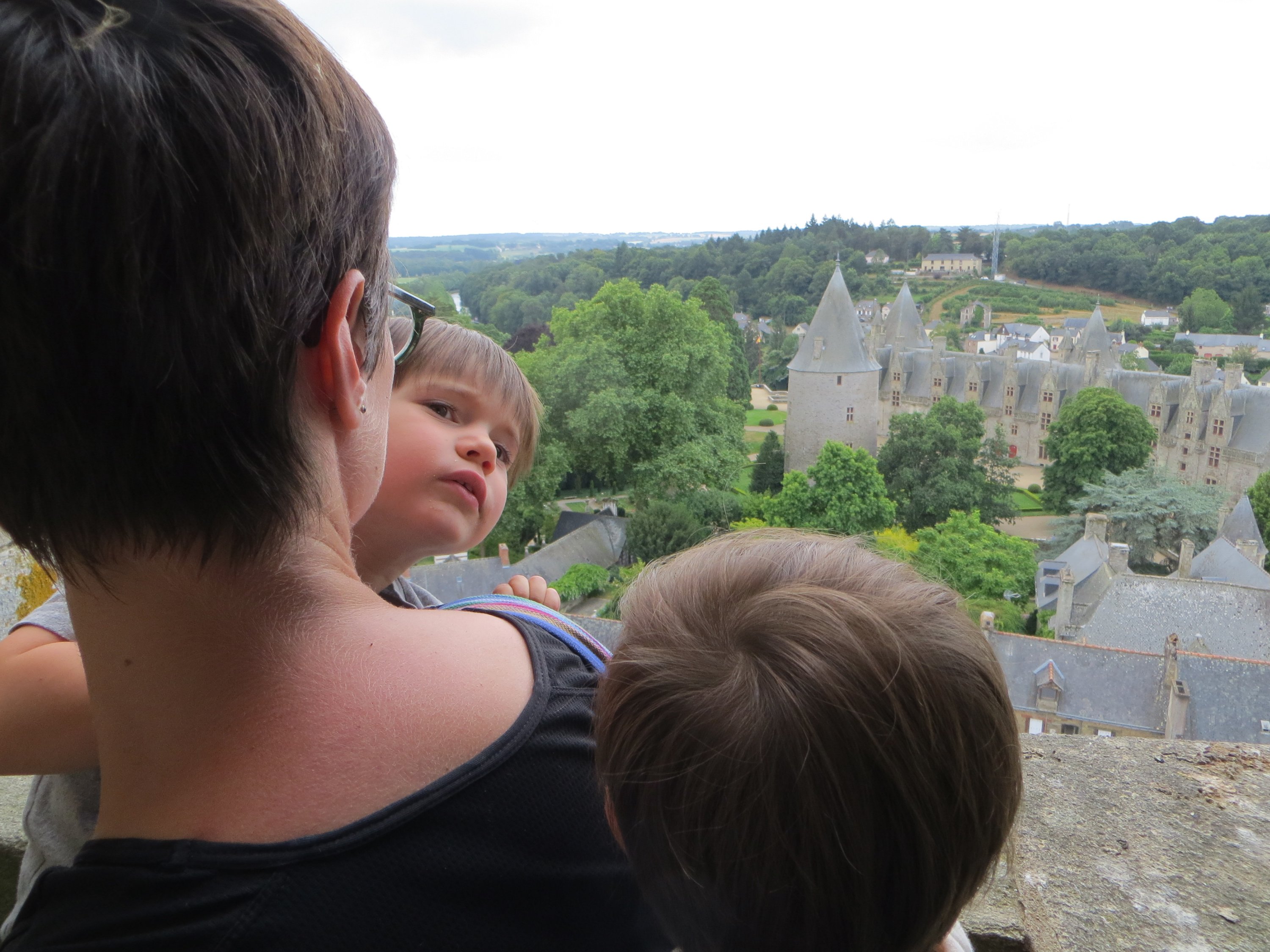 Nous faisons la pause à Josselin, qui a un beau chateau. Après un pique-nique en bord de ville, on fait un peu de tourisme, et on monte notamment en haut de la tour de l’église (et Colin grimpe tout !).