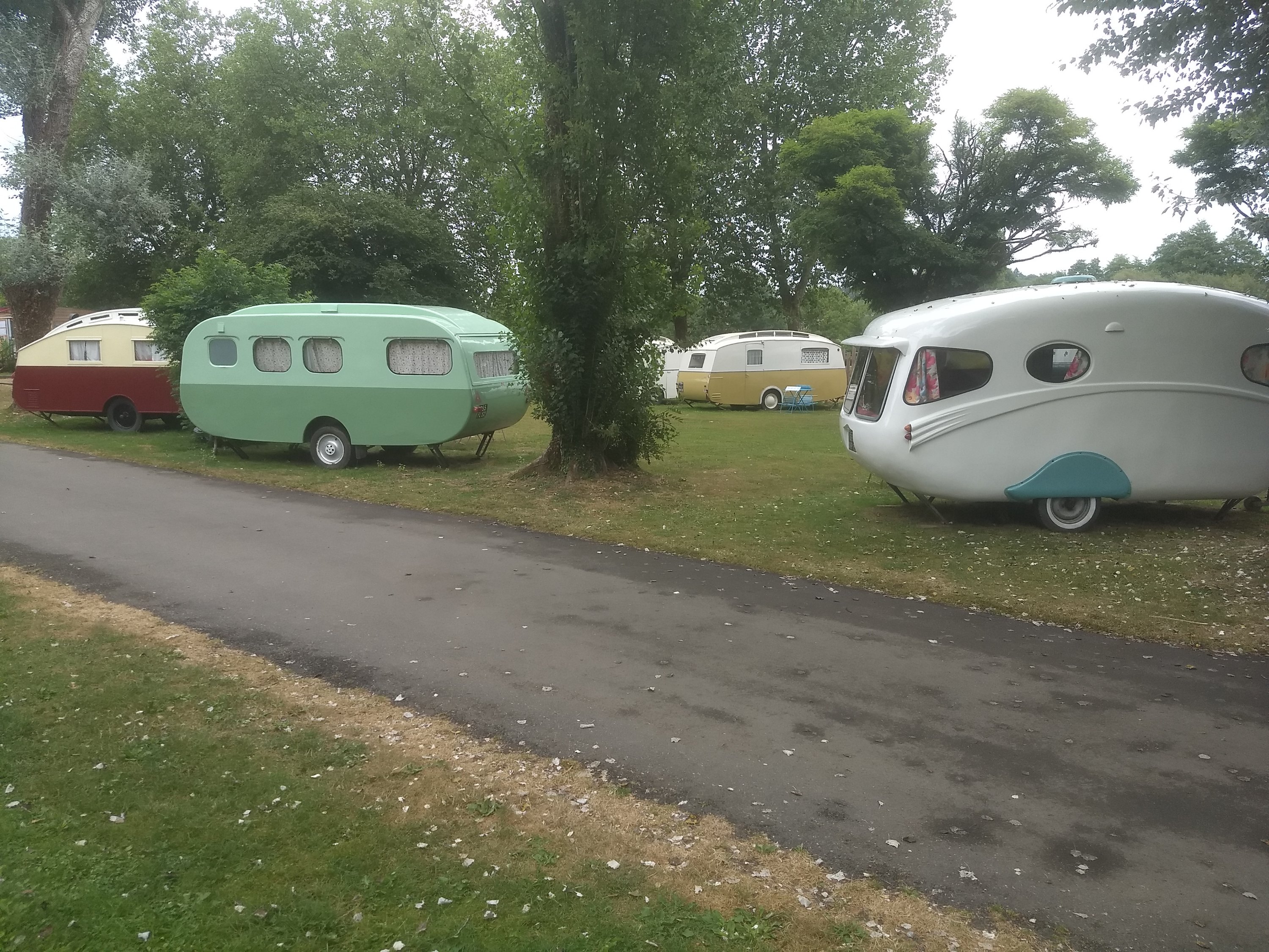 Le soir, le camping de Roc-Saint-André a une grande collection de caravanes de collection. Et une piscine, dont les enfants profitent. Et des jeux assez sympa, comme un trampoline. La ville est juste à côté et également bien fournie avec une super épicerie. Une très bonne ville d’étape en résumé. Seul bémol sur le camping, l’allée centrale est très (trop) utilisée par les voitures. Au passage, on rattrape la famille avec beaucoup d’enfants et découvrons le petit dernier, qui ne roule pas encore, et un gateau dans le four, comme disent certains.