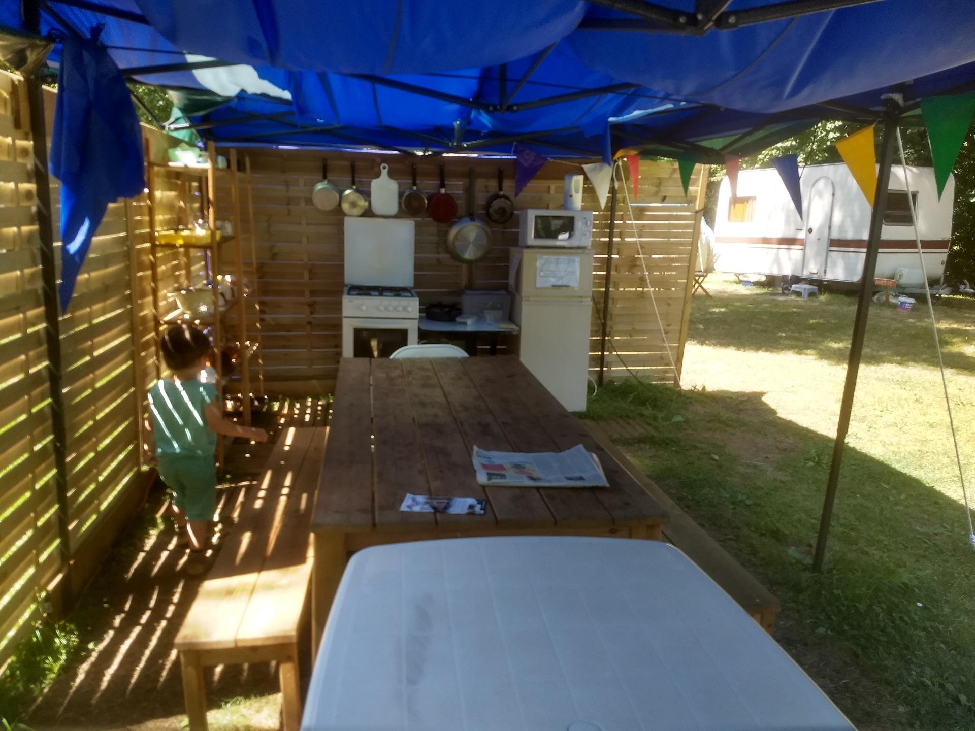 Nous avons ensuite changé un peu le matériel de camping. Avec un réchaut plus puissant (on était juste il y a deux ans), un nouvel ensemble de couverts et de matériel de cuisine (pour quatre personnes), un fil à linge…