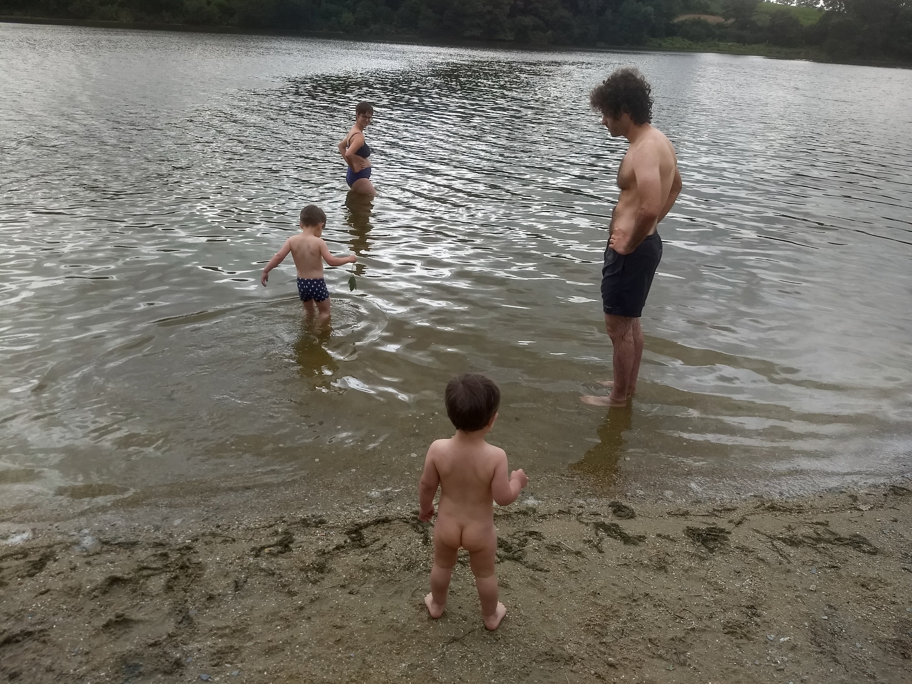 Les deux adultes sur la photo sont ceux qui iront vraiment dans l’eau On dîne le soir à la crêperie du camping, ouverte que le soir. Colin y trouve un copain de son âge, et comme nous sommes en terrasse, les deux contribueront à augmenter les activités sportives des adultes référents.