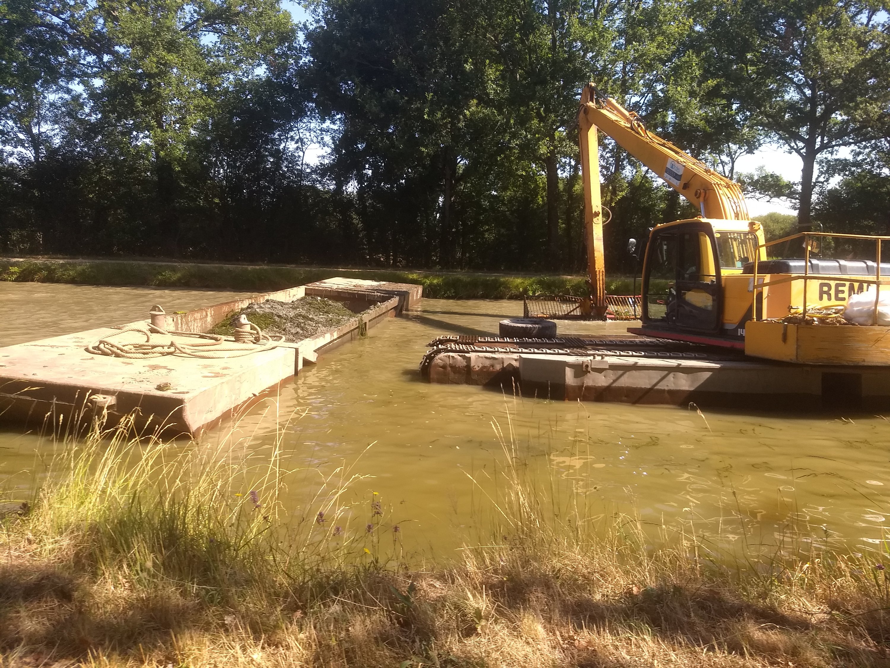 Cette rigole est un ouvrage assez étonnant, construit pour alimenter en eau le canal de Nantes à Brest. Il est donc parfaitement plat, sans écluse, mais très très sinueux. Il ne reste que quelques zones remplies d’eau, la rigole ayant été asséchée et remplacée par une station de pompage.