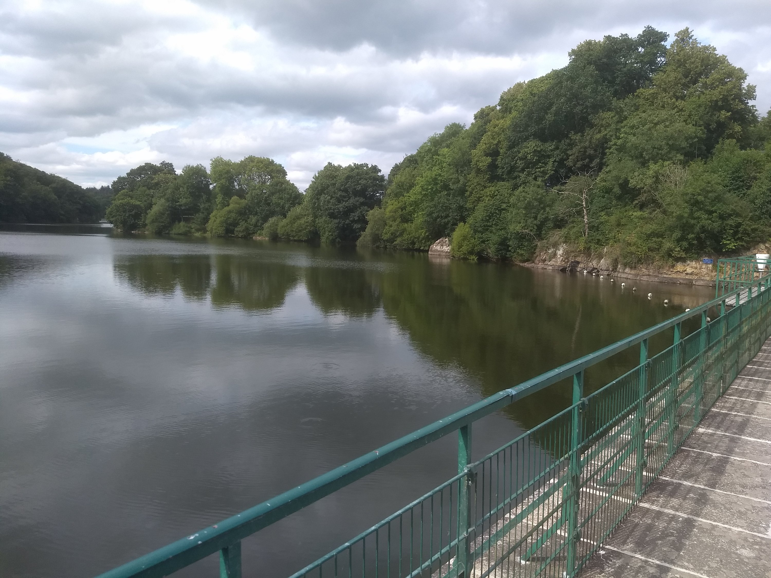 L’étape prévue est courte (environ 25km), mais avec une grosse montée à la fin. En effet, au niveau de Mur de Bretagne, un barrage a généré le lac de Guerledan qui a englouti le canal et de nombreuses écluses : on devra tout monter par une pente violente.