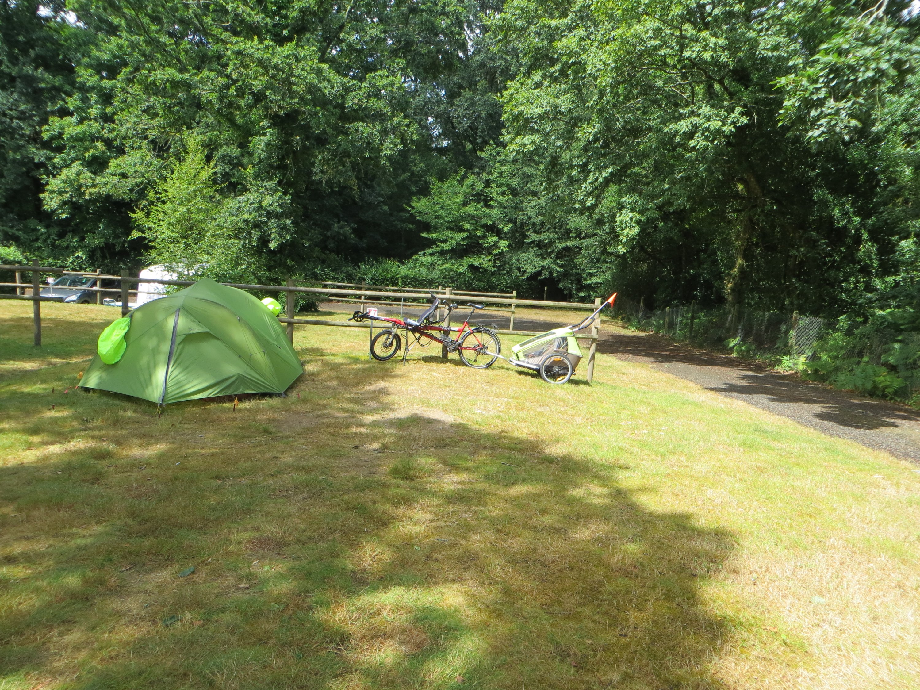 Le lendemain, on fait donc une petite étape pour aller au camping de Guenrouët, dont on nous avait dit du bien. On roule plus vite et ca semble plus facile, les enfants dorment bien, et nous sommes de nouveau avant le déjeuner sur place.