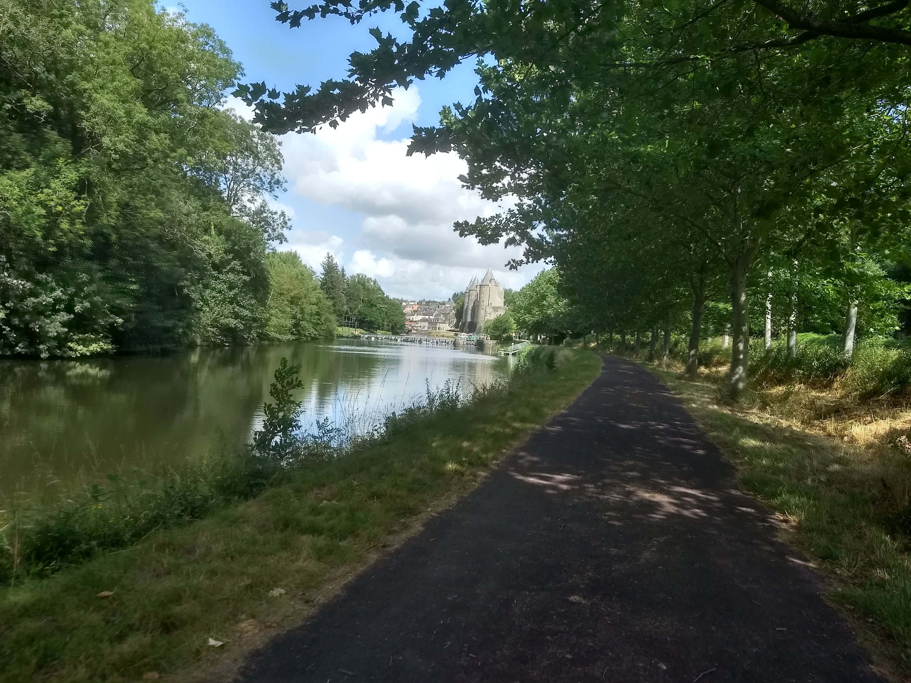 Une écluse, puis une autre, puis… À Pontivy on retrouve un petit camping municipal au prix imbattable. On campe à côté des jeux pour enfants. Arrivés tôt, on a le temps de visiter la ville (le château est très beau mais malheureusement fermé au public).