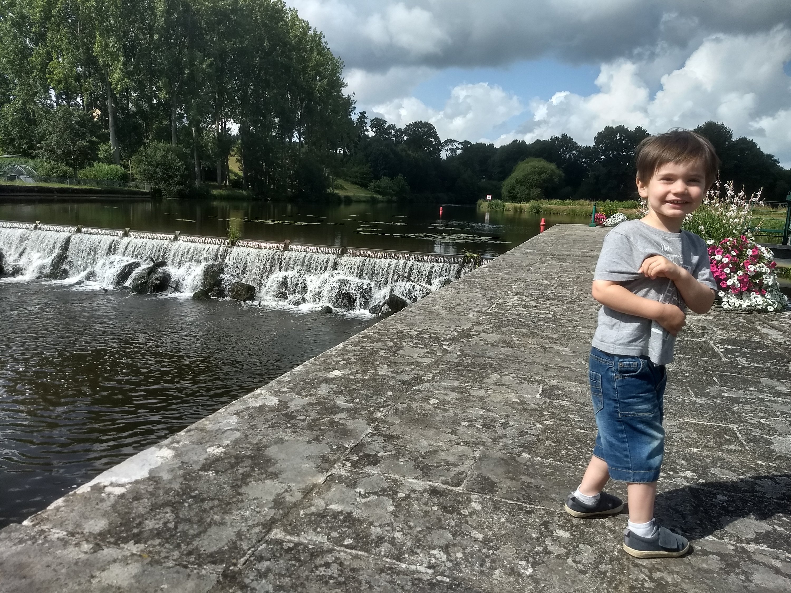 On fait ensuite une promenade pédestre pour profiter des environs. Colin est très heureux de pouvoir monter sur le barrage (plus en activité), et qui a par ailleurs une belle chute d’eau.
