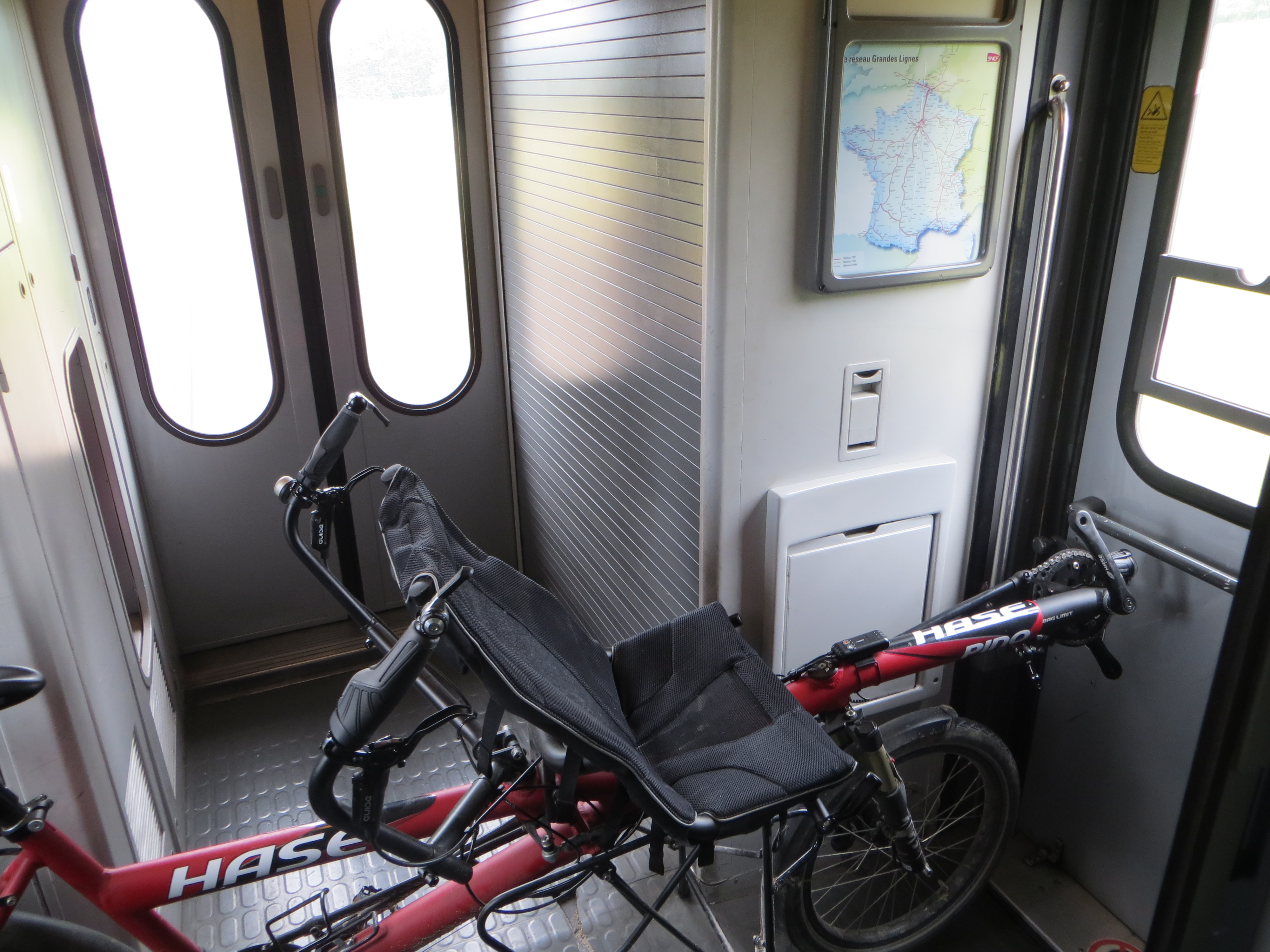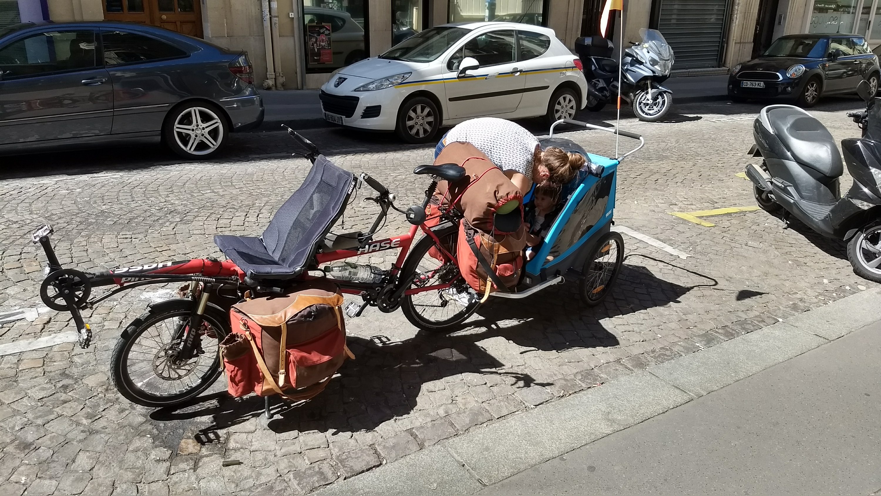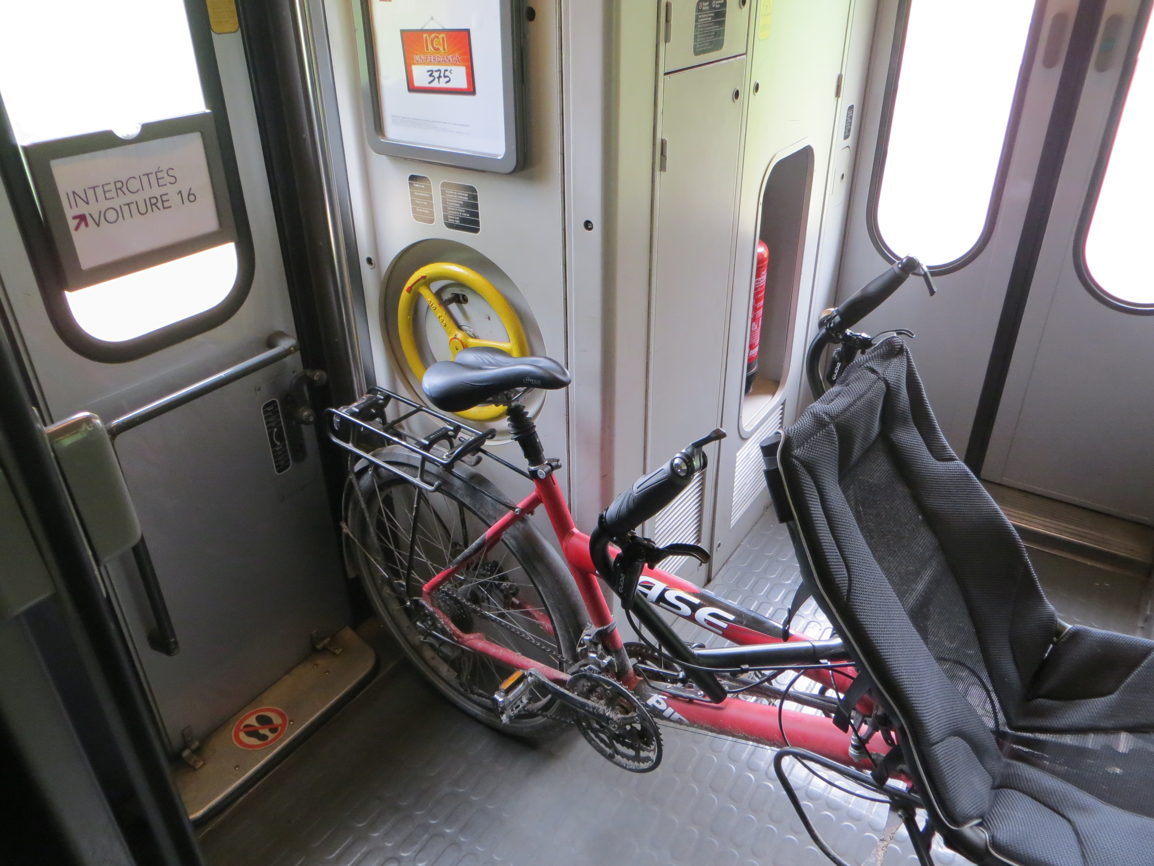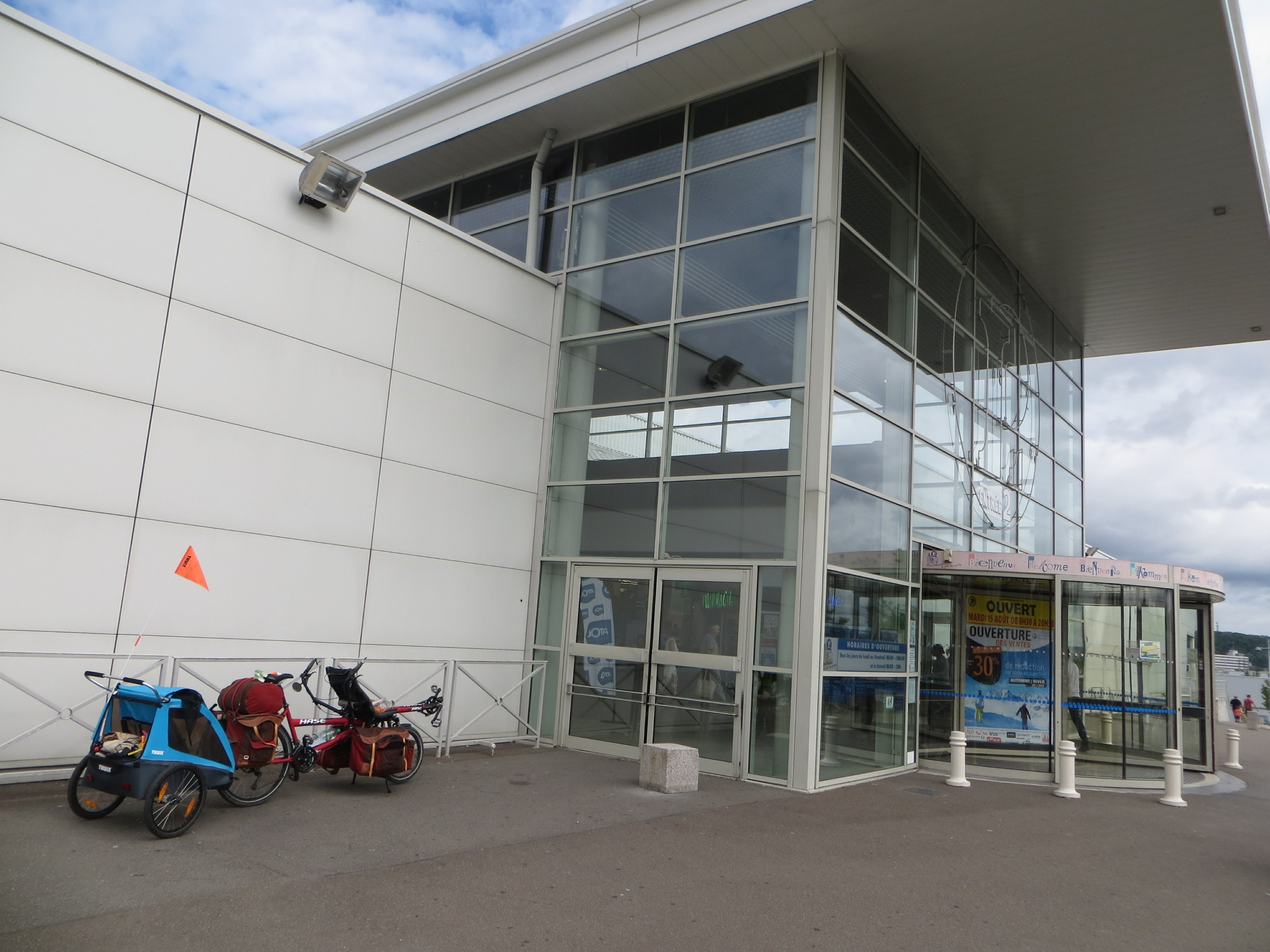 Sur le retour nous nous sommes rendus compte de l’existence d’un réparateur-vendeur de vélos (pas du tout référencé sur Internet, notamment absent des cartes d’openstreetmap), et je suis donc par la suite allée faire la visite pour changer la chambre à air arrière. Il a même trouvé la minuscule épine dans le pneu, certainement à l’origine de ce dégonflement lent.