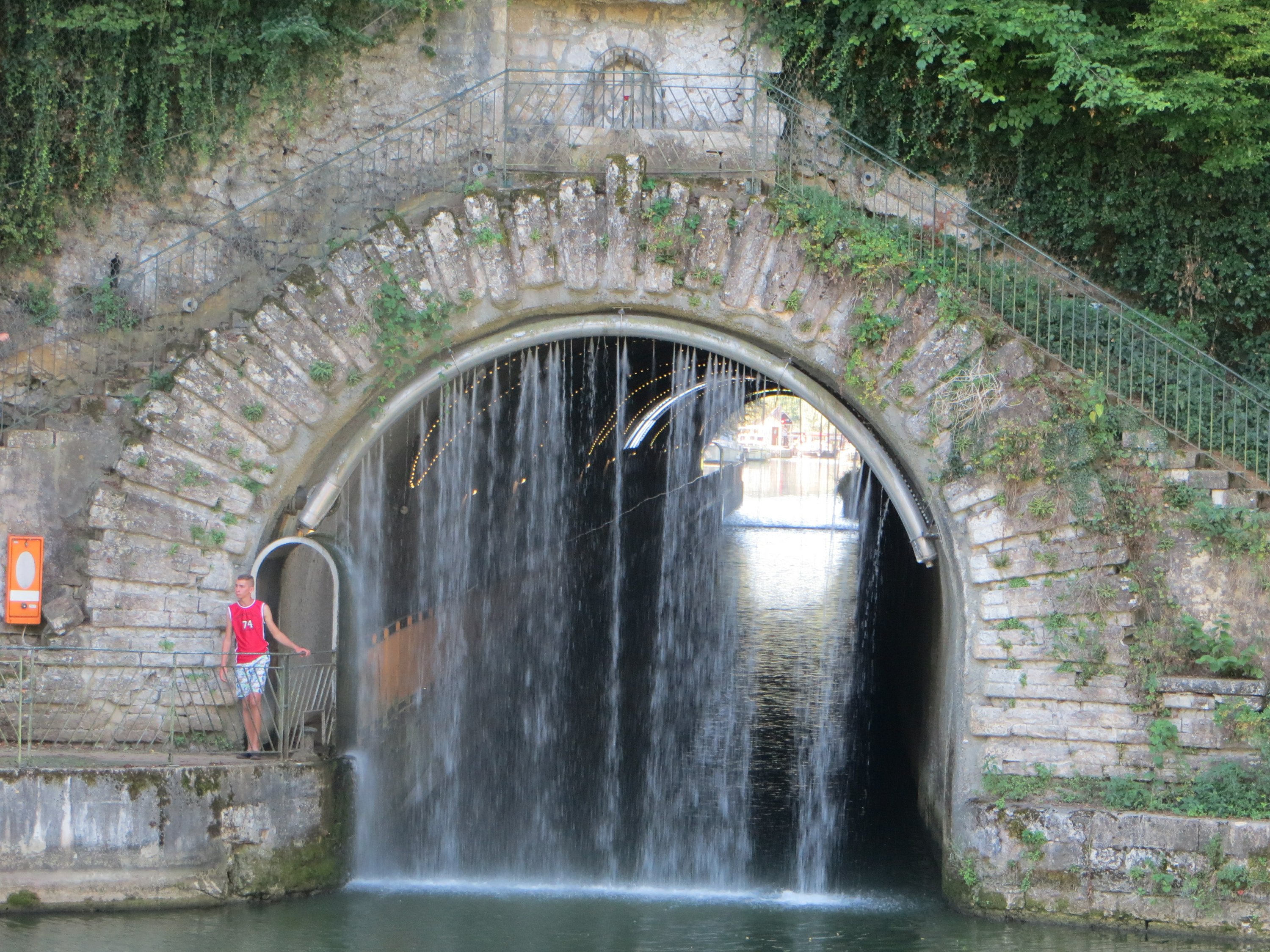 Cette saline royale a été inaugurée sous Louis XV, un siècle après le rattachement de la Franche Comté au royaume de France, sous la direction de l’architecte Jean-Baptiste Ledoux. Le bonhomme était dans la force de sa carrière et pouvait se permettre de réaliser ses conceptions assez innovantes. On aboutit à un édifice assez vaste et moderne pour l’époque où toute la communauté de production de la saline vivait ensemble selon des règles bien définies. Il paraît selon notre guide, que l’édifice interpellait beaucoup et faisait railler les cours de l’époque, étant donné le luxe de l’édifice construit pour héberger et faire travailler des culs terreux. Il faut bien reconnaître que c’est assez classe.