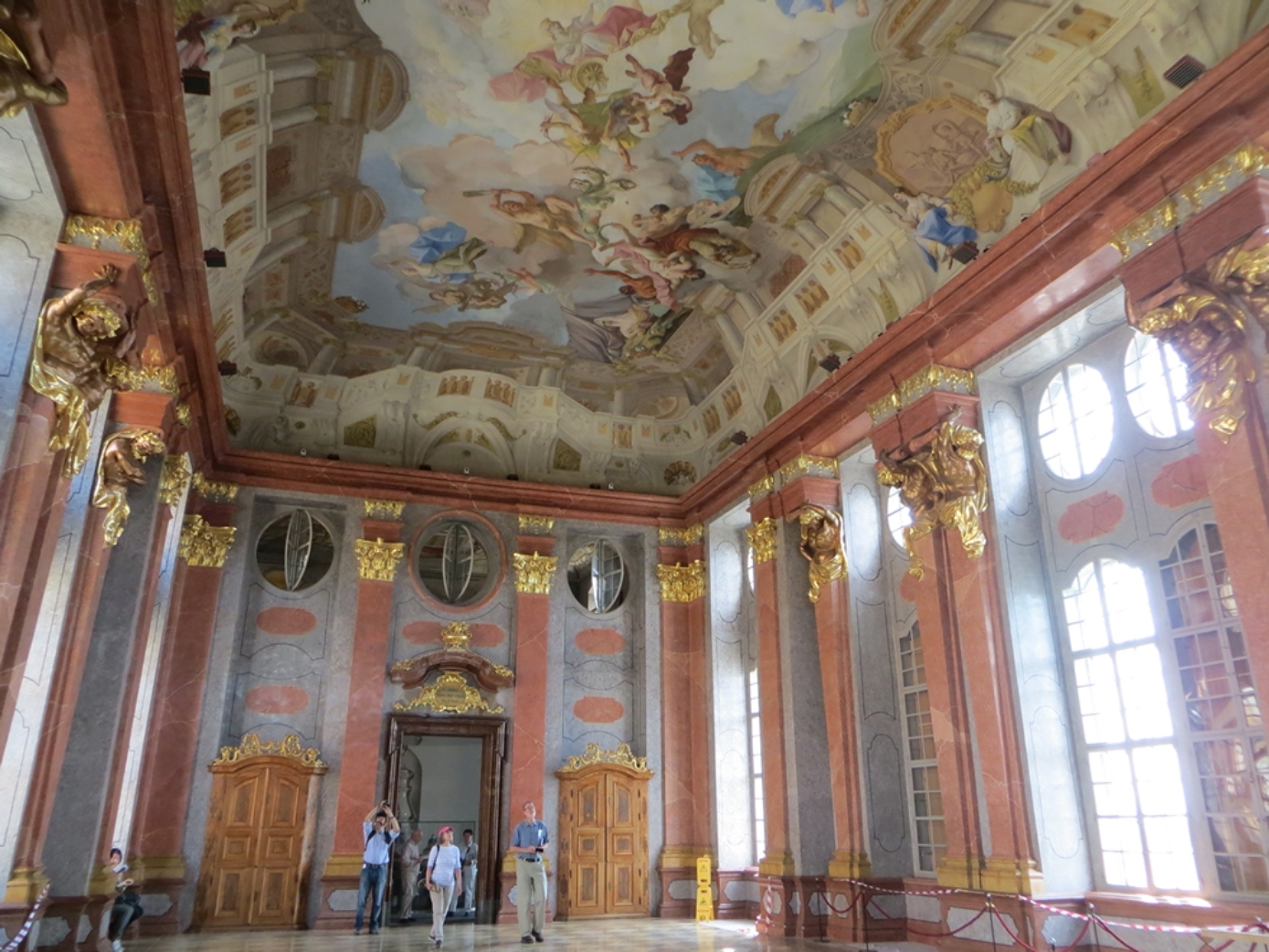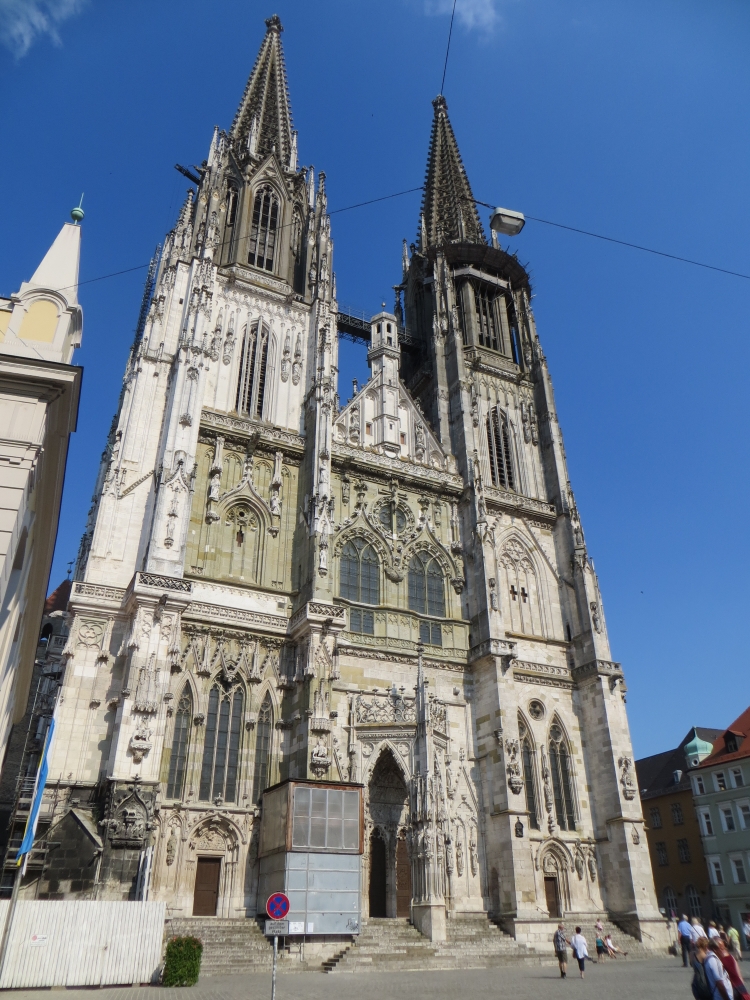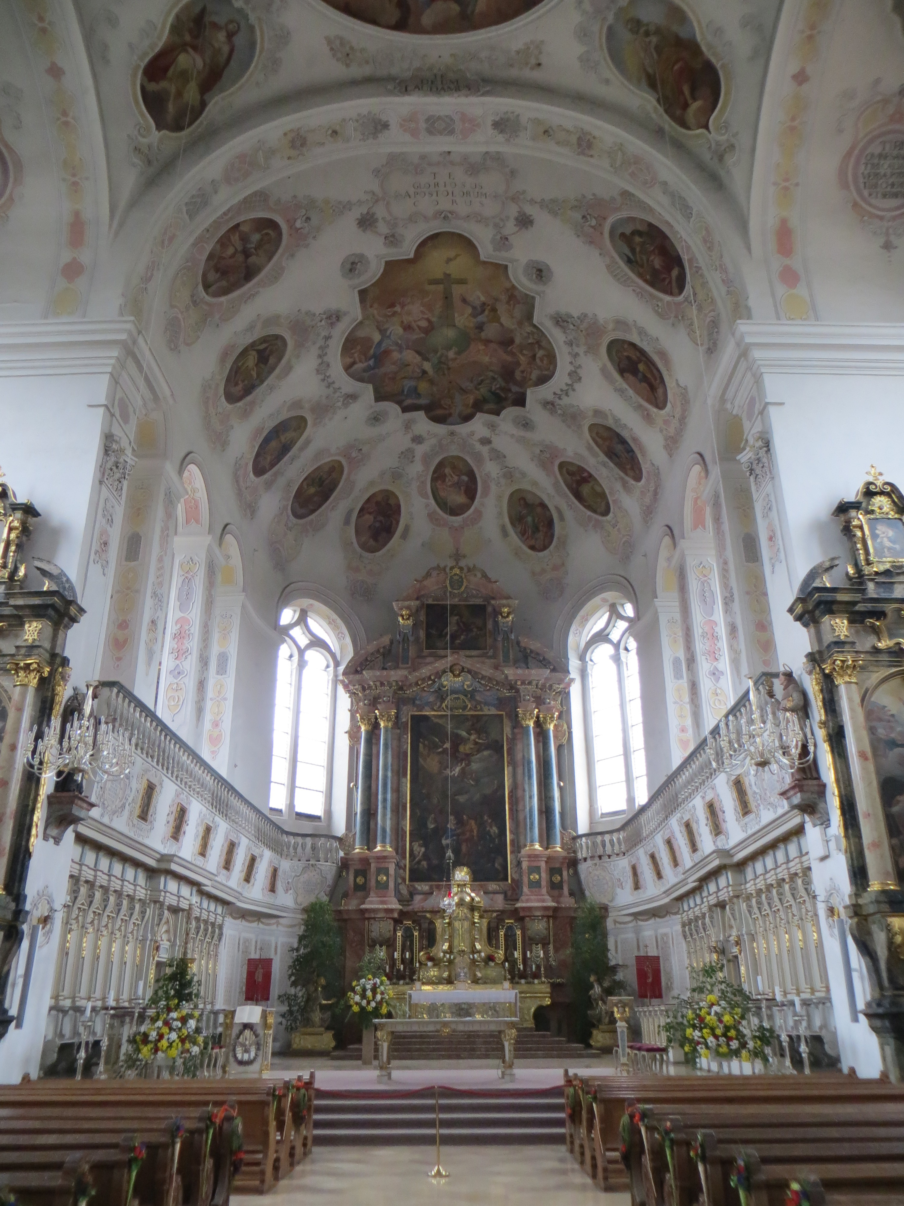 Le chemin prévu tout comme le chemin pris convergent à Dillingen, une jolie petite ville que nous explorons un peu. Elle n’a pas été abîmée par la seconde guerre mondiale, et les beaux bâtiments sont très nombreux. La basilique Saint-Pierre notamment est très jolie, y compris à l’intérieur. Par contre, on ne trouve rien à manger à emporter. Ce n’est finalement pas très grave : comme il fait relativement froid, nous décidons de trouver un restaurant pour se mettre au chaud un peu plus tard sur la route.