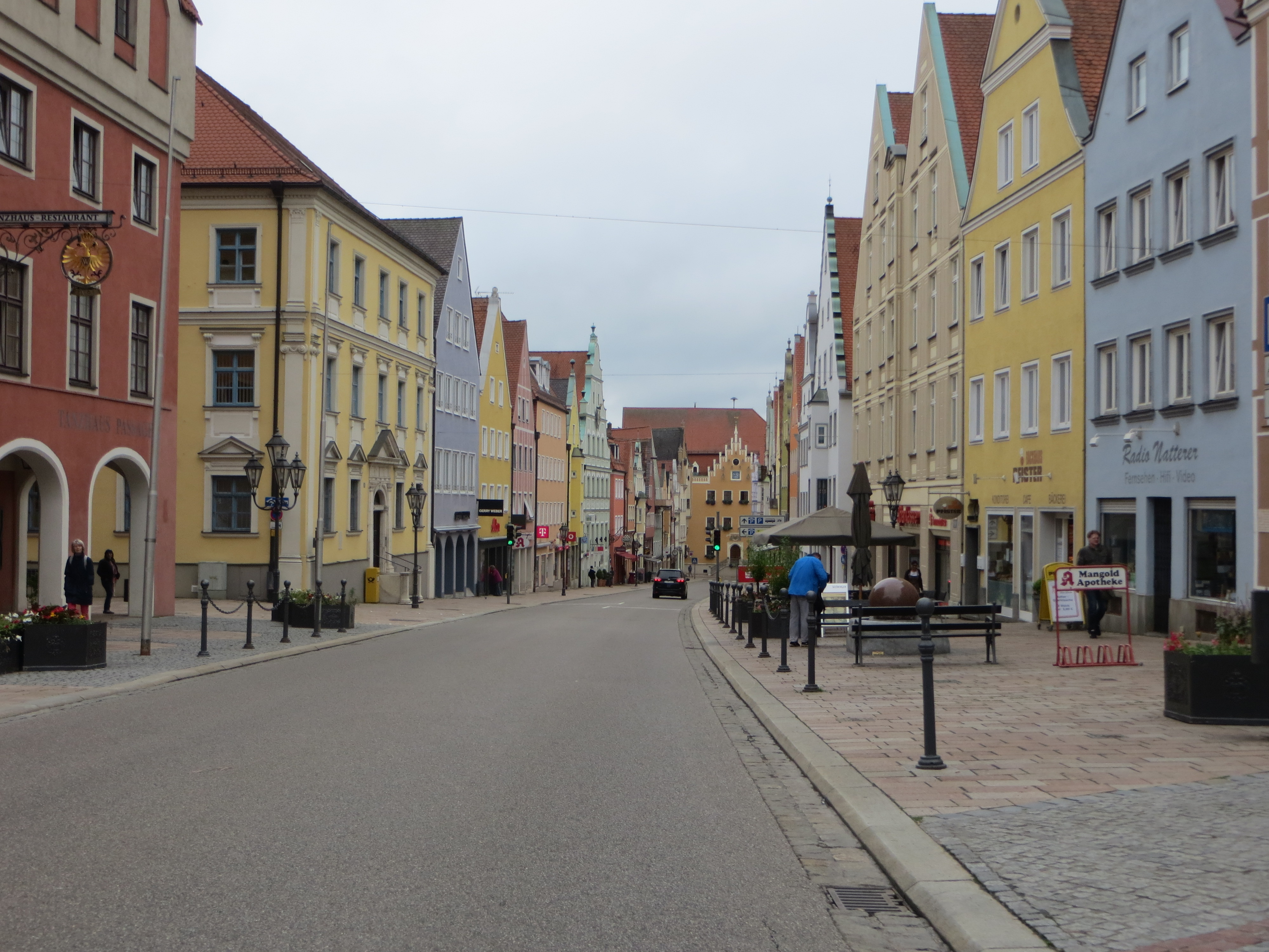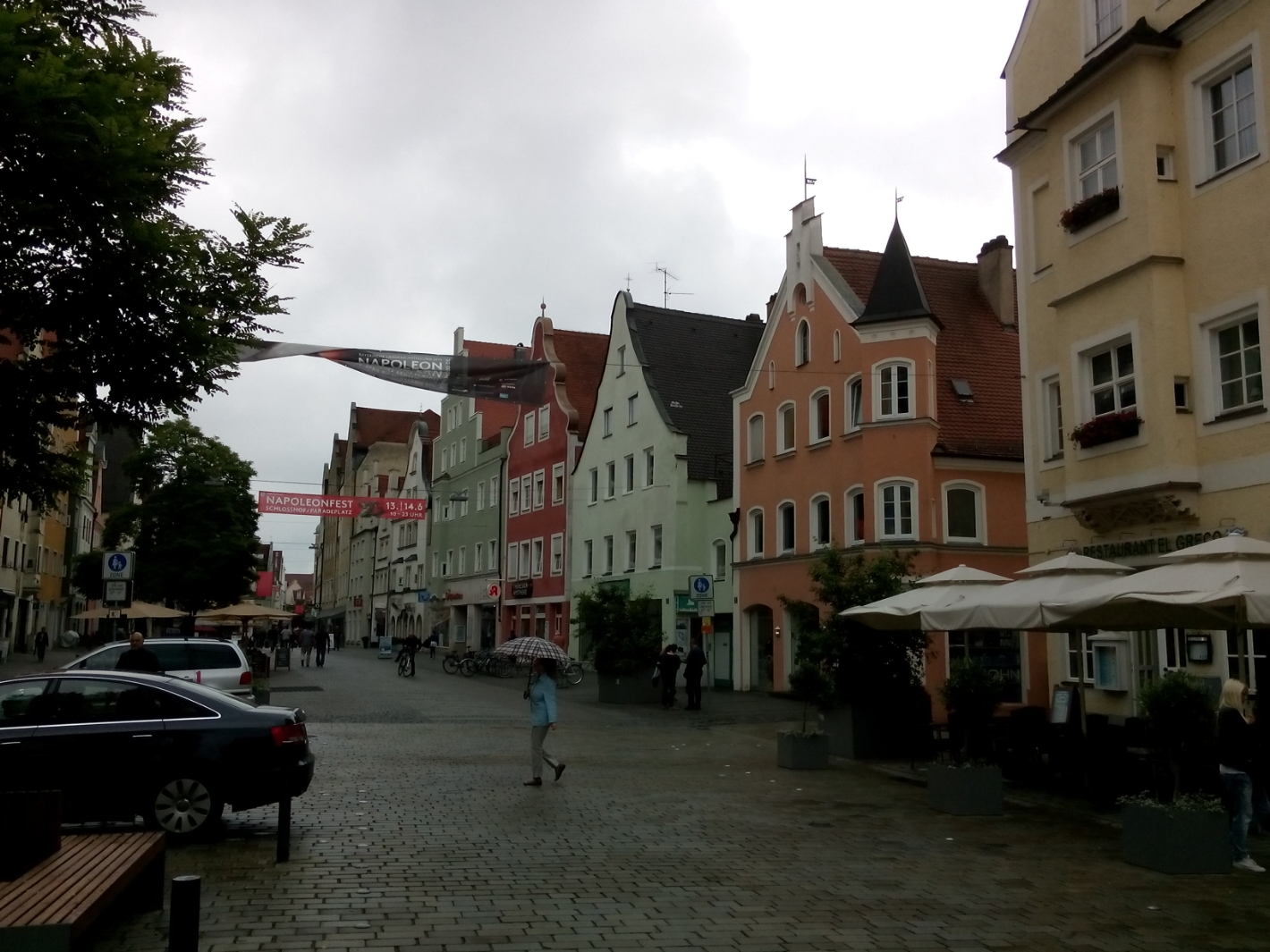 Ce sera fait à Lauingen (rejointe par un raccourci que nous n’avons pas raté cette fois), dont on ne retiendra pas grand chose hormis le Rathaus. On mange dans un restaurant italien, qui nous permet de nous restaurer à notre faim et de nous réchauffer un peu. En terrasse, un groupe de « cyclistes » allemands carbure à la bière.