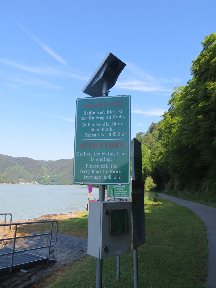 Le début du trajet se fait sur de la petite route, avec très peu de voitures. C’est assez joli et nous avançons bien. On croise quelques pancartes de protestation, il semblerait que les autorités songent à déplacer une partie de la population pour faire une zone inondable quand le Danube monte trop. C’est en effet très plat, et très peu dense, probablement idéal donc pour ce genre de projets (quand on est pas habitant).