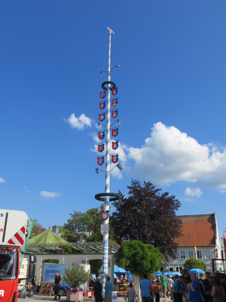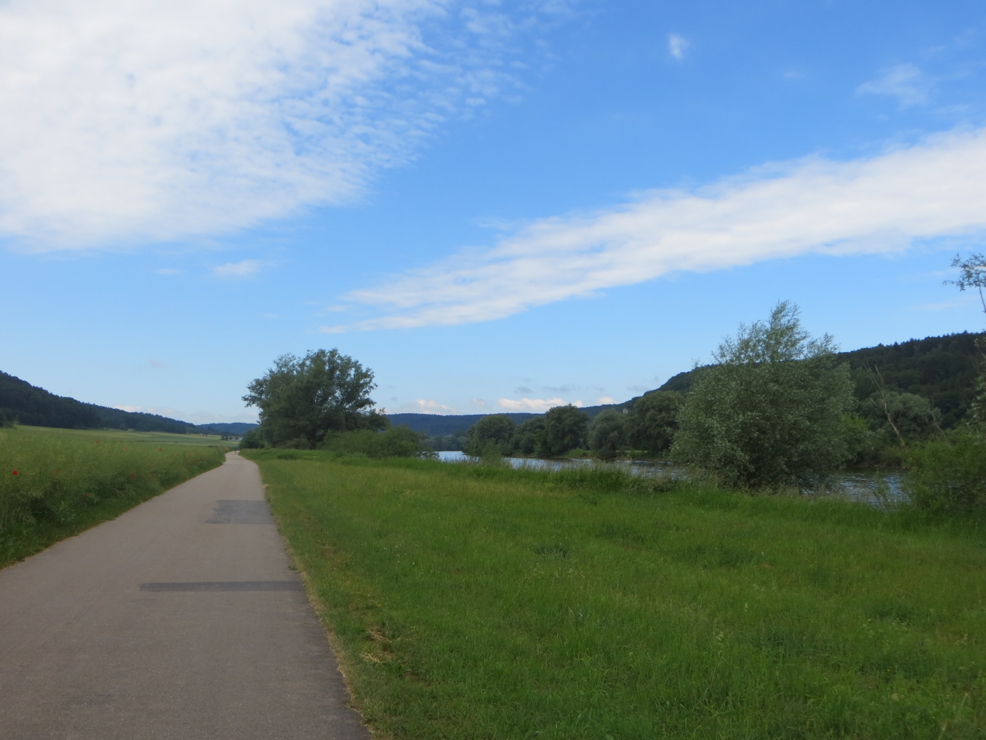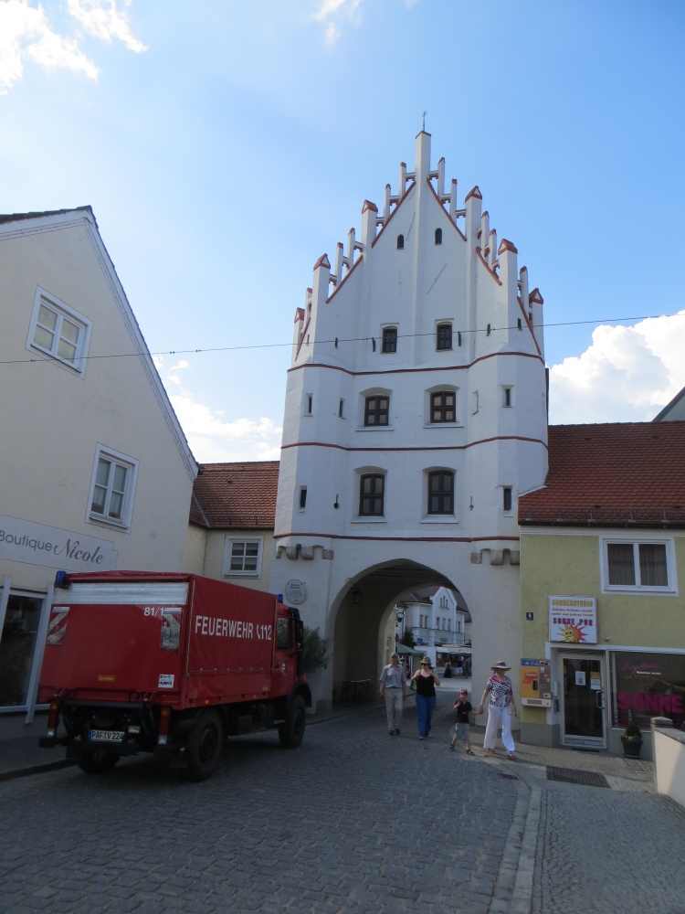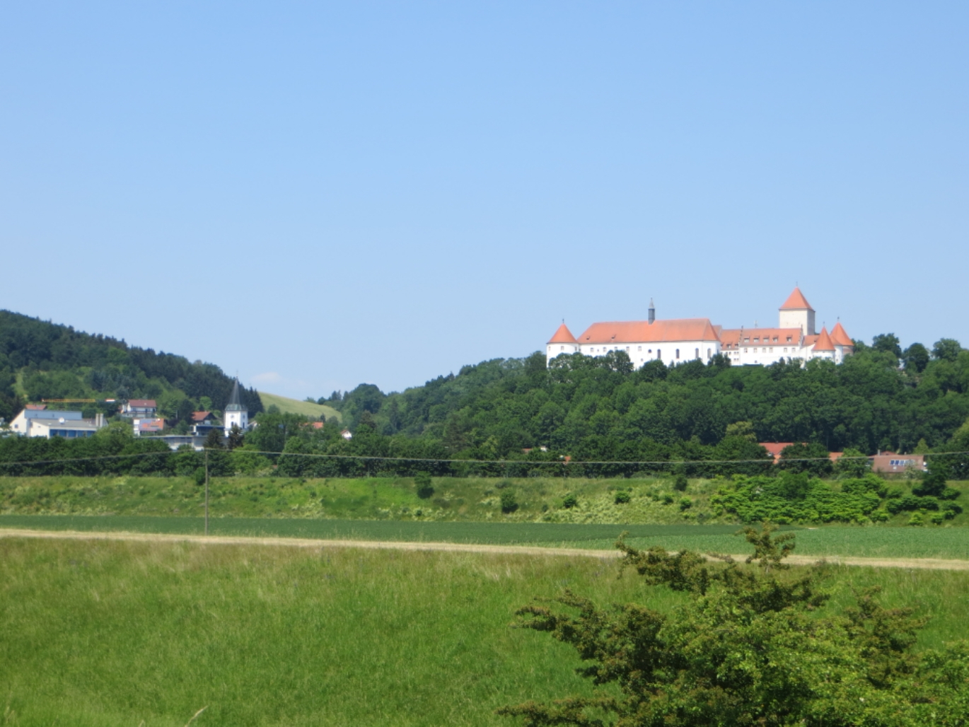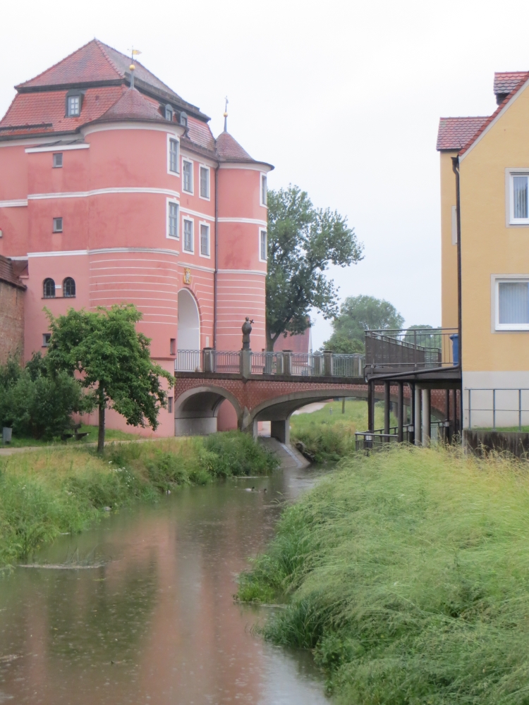 On arrive au château d’Höchstädt vers 10 heures en ayant déjà fait une trentaine de kilomètres (un tiers !). Comme on commence à avoir faim, le paquet de graines importé depuis la France et qui avait fait pas mal de chemin est enfin mis à contribution. La traversée de la ville est ensuite un peu compliquée car la route est coupée par des travaux. Mais on arrive à s’en sortir. Probablement un peu perturbés, on rate le premier raccourci que nous voulions prendre par rapport à l’itinéraire officiel ce qui nous rajoute 3 kilomètres par rapport à nos prévisions. Mais comme le chemin est sympa, on ne se plaindra pas !